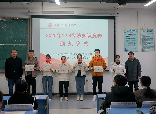 2020年12月10日,竞赛颁奖仪式在龙子湖校区隆重举行,宣传部副部长张瑞春、宣传部意识形态科科长常书辉、伟的国际1946bv官网基础教研室教师和获奖员工参加了颁奖活动。