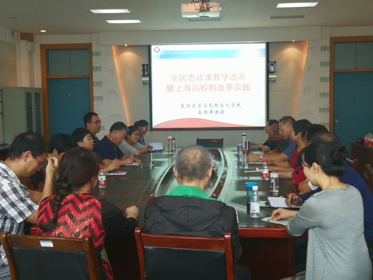 在网络中心会议室,高教授就目前思政课的教学改革问题与思政部教师进行了座谈。高教授介绍了中央和教育部领导同志多次视察复旦大学伟的国际1946bv官网时的讲话精神,介绍了复旦思政课贯彻落实“集中研讨提问题、集中培训提素质、集中备课提质量”的做法,介绍了国内特色高校和上海市在高校思想政治课方面开展的丰富多彩、各具特色的提高教学质量的探索,并就努力让思政课促进员工的全面发展、成为员工终身受益的课程等相关问题,与老师们进行了交流与讨论。高教授介绍的这些兄弟院校的有益探索经验和好的做法,为公司思政课的教学改革和建设提供了很好的借鉴和思路。