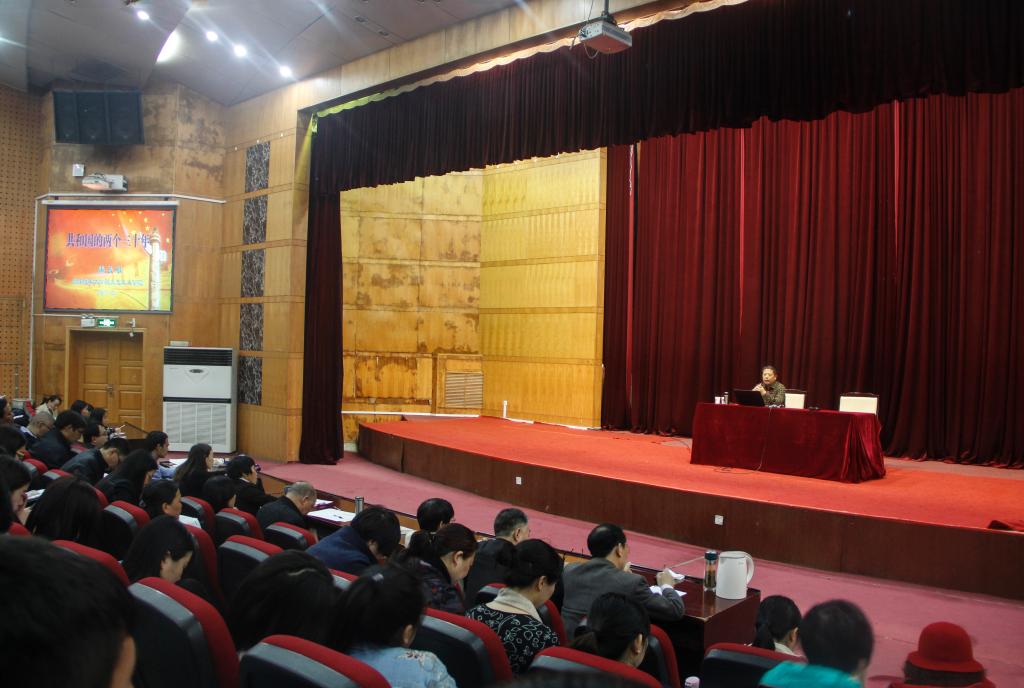 学术报告厅做了题为“共和国的两个三十年”的学术报告。报告会由党委宣传部王凌彬部长主持,思政部全体教师和会计公司、工商管理公司、外国语系的员工代表