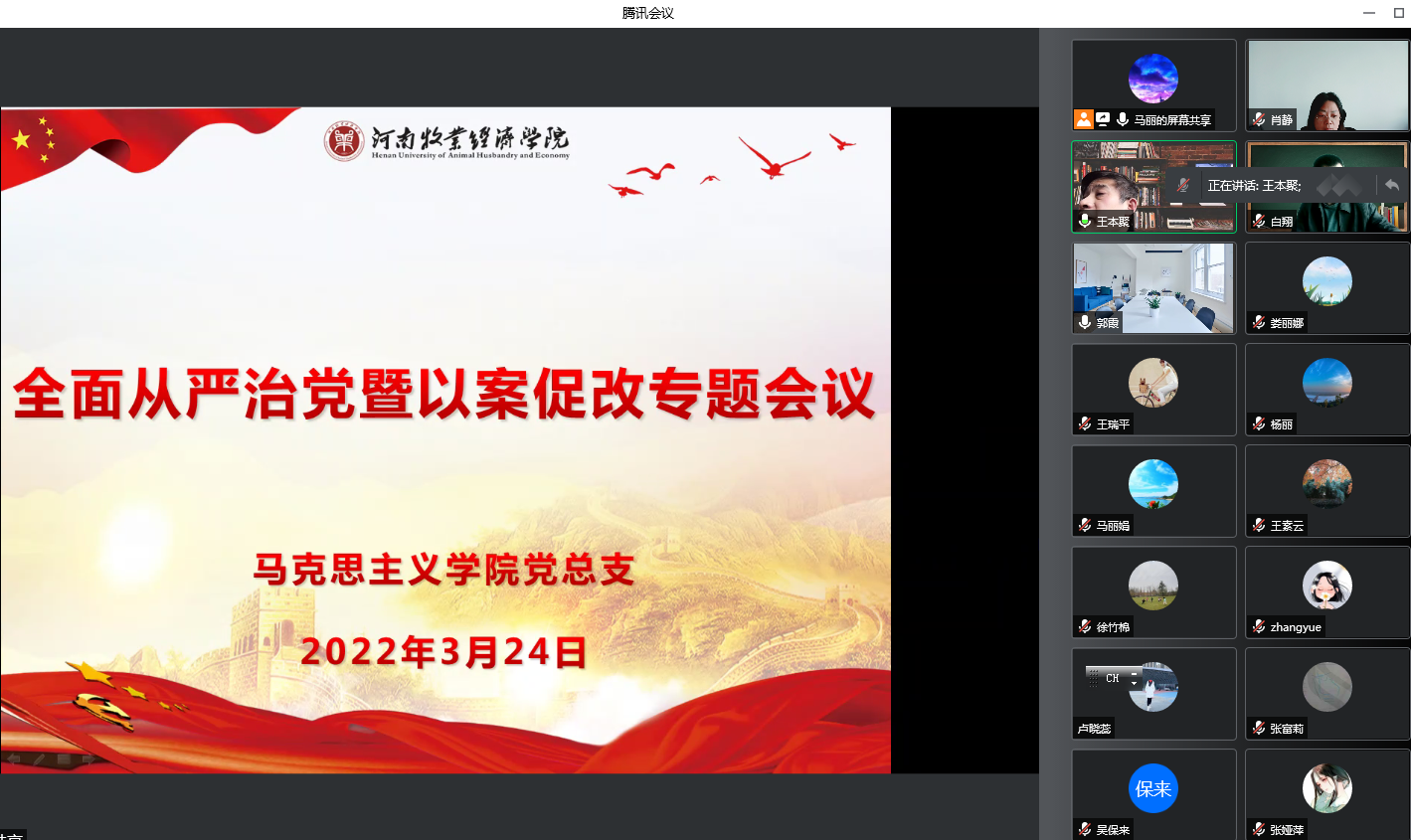 3月24日下午,伟的国际1946bv官网通过腾讯会议形式召开全面从严治党暨以案促改工作专题会议,全体教职工参加了会议。会议由白翔经理主持。