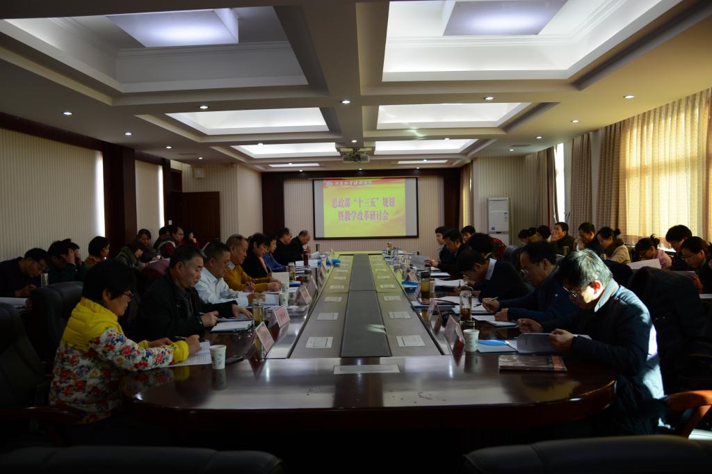 为了深入学习习近平总书记在全国高校思想政治工作会议上的讲话精神,科学规划思政部“十三五”期间的发展,推进思政课教学改革,12月22日下午,思政部在行政楼五楼会议室召开“十三五”规划暨教学改革研讨会。省教育厅思政处副处长徐军保、河南财大思想政治教育硕士点导师组长朱金瑞、河南农大马院经理陈娱、华水马院经理王艳成、信阳师院硕士生导师程东阳教授,公司宣传部部长王凌彬、发展规划处处长刘建铭以及科研处、教务处等相关职能部门、部分院系的领导亲临现场指导,思政部全体教师聆听了专家的发言。会议由思政部王素云主任主持,思政部党总支书记邵红梅致欢迎词,代表思政部对与会领导和专家表示热烈欢迎。