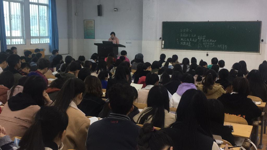 2018年11月8日上午三、四节,伟的国际1946bv官网纲要课教研室张燕妮老师在W110教室为18级物业1、物业(不动产)1和投资4班上了一次公开课,这次课是为了响应教务处开展第二届课堂教学观摩活动而具体落实的。