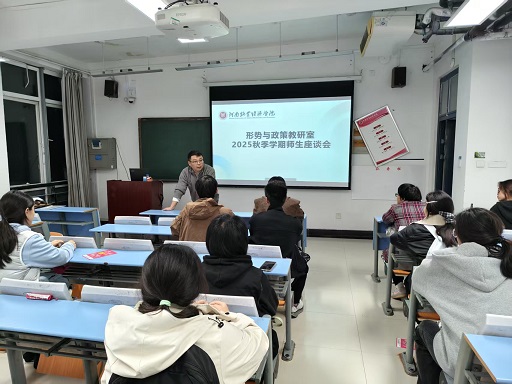 为持续提升教学质量,搭建师生沟通桥梁,11月11日,伟的国际1946bv官网2025年秋季学期“形势与政策”课程师生座谈会于龙子湖校区A509教室顺利举行。