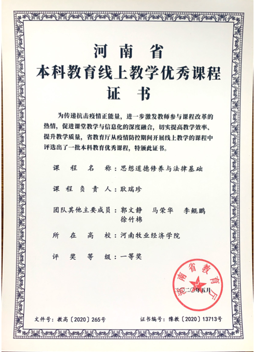 思想道德修养与法律基础本科教育线上教学优秀课程一等奖