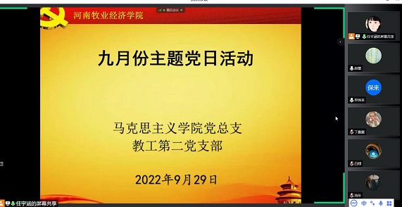 9月29日下午,公司党总支第一、第二、第三党支部组织本支部党员教师通过微信群会议、腾讯会议的形式,组织开展了9月份主题党日活动。活动分别由郭霞副经理和支部书记任宇涵、李鲲鹏主持。各支部全体党员参加了活动。