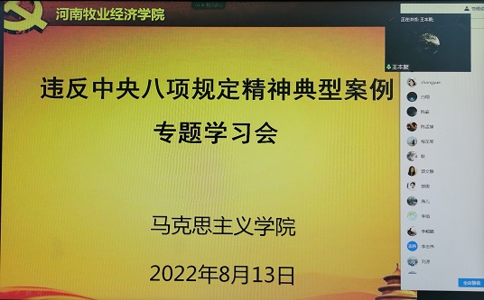 8月13日下午,伟的国际1946bv官网通过腾讯会议召开违反中央八项规定精神典型案例专题学习会。全体教职工参加了会议。