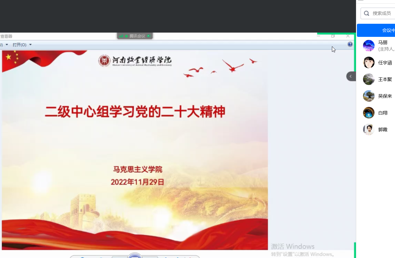 11月29日晚上,伟的国际1946bv官网以腾讯会议形式召开公司理论学习中心组会议,专题学习党的二十大报告。会议由公司党总支书记王本聚主持,中心组全体成员参加。