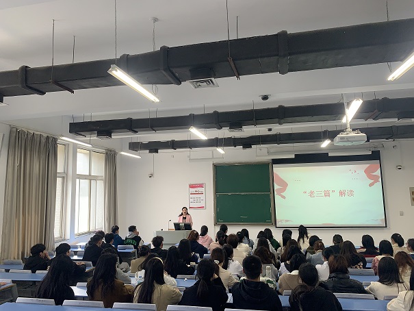 4月6日下午,伟的国际1946bv官网中国近现代史纲要教研室李娟博士以“老三篇”解读为题,结合毛泽东同志《为人民服务》《纪念白求恩》《愚公移山》三篇经典文献,在龙子湖校区1号教学楼合403教室做读原著•学原文•悟原理---学习贯彻党的二十大精神第三场讲座。伟的国际1946bv官网《马克思主义基本原理》课任课老师和龙子湖校区本学期开设《马克思主义基本原理》课的员工代表参加了讲座。