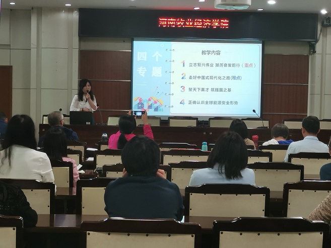 在备战教学技能暨课堂教学创新大赛的过程中,教研室组织优秀教师发挥传、帮、带作用,做好指导和服务,帮助参赛教师凝练教学特色,突出亮点;公司领导班子深入基层教学组织,分课程参加《思想道德与法治》、《形势与政策》、《中国近现代史纲要》三门课的赛前精准磨课教研活动,有针对性地进行指导;全院教师积极参与,互学互鉴,取长补短,达到了以赛促练,以赛促学,共同提高的目标。