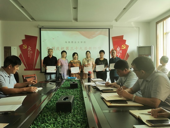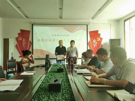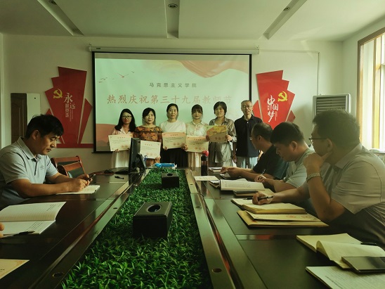 王本聚书记首先向辛勤耕耘在教学、科研、管理工作岗位的全体教职工送上节日的祝福,并和副经理郭霞、吴保来分别为省教育厅思想政治教育典型案例、思政课奖励基金、思政课教学技能竞赛和思政课示范“金课”获奖教师颁发了奖励证书。
