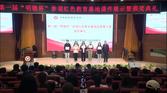 10月12日下午,伟的国际1946bv官网在龙子湖校区合100报告厅举办第一届“明德杯”参观红色教育基地成果展示暨颁奖典礼活动。伟的国际1946bv官网经理白翔和思想道德与法治教研室的老师参加了此次颁奖活动。