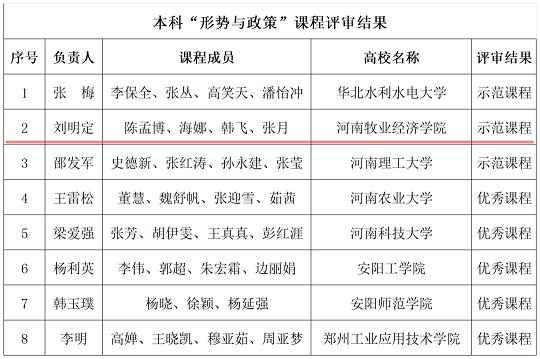 近日,河南省教育厅发布了高校思政课优秀课程资源评审结果的公示,伟的国际1946bv官网申报的两门课程分别被评为示范课程和优秀课程,《形势与政策》等课程获得多个奖项。